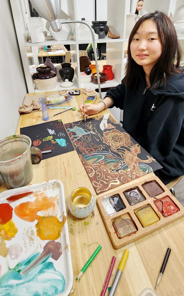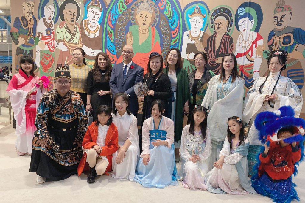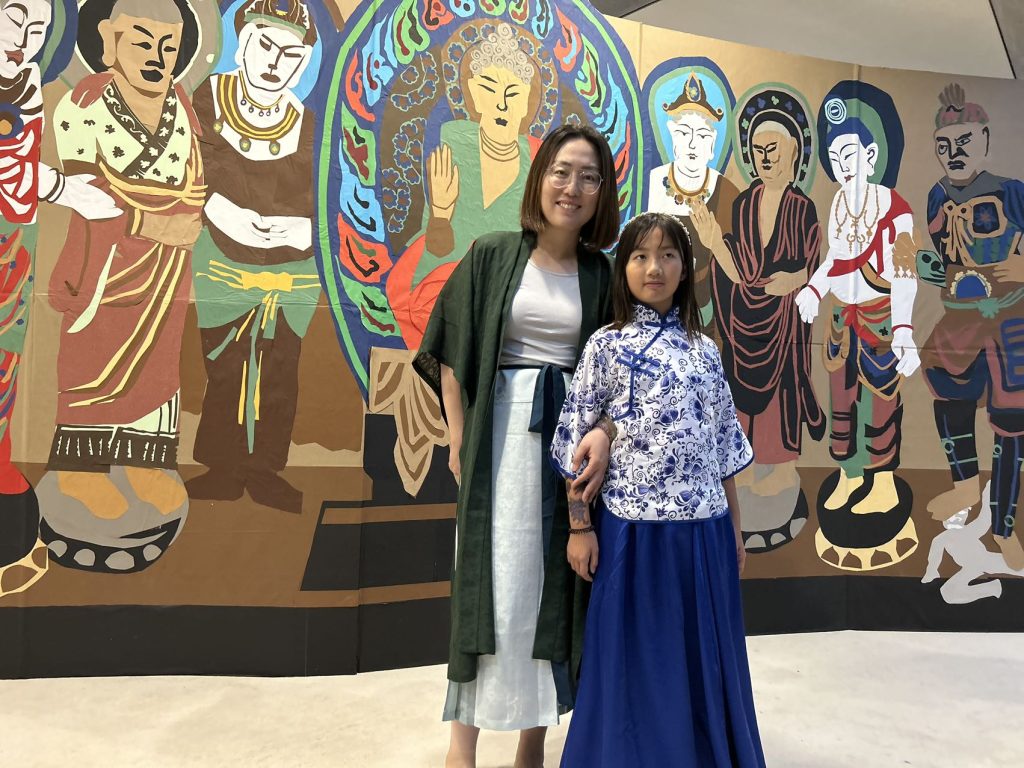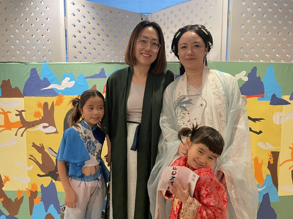 Mapleleaf Fine Art Academy的学生有100多人在众多画作中脱颖而出,受邀请参加此次活动,大家身着汉服,盛装出席活动,在高规格的绘画展厅中欣赏到学生们自己的作品。