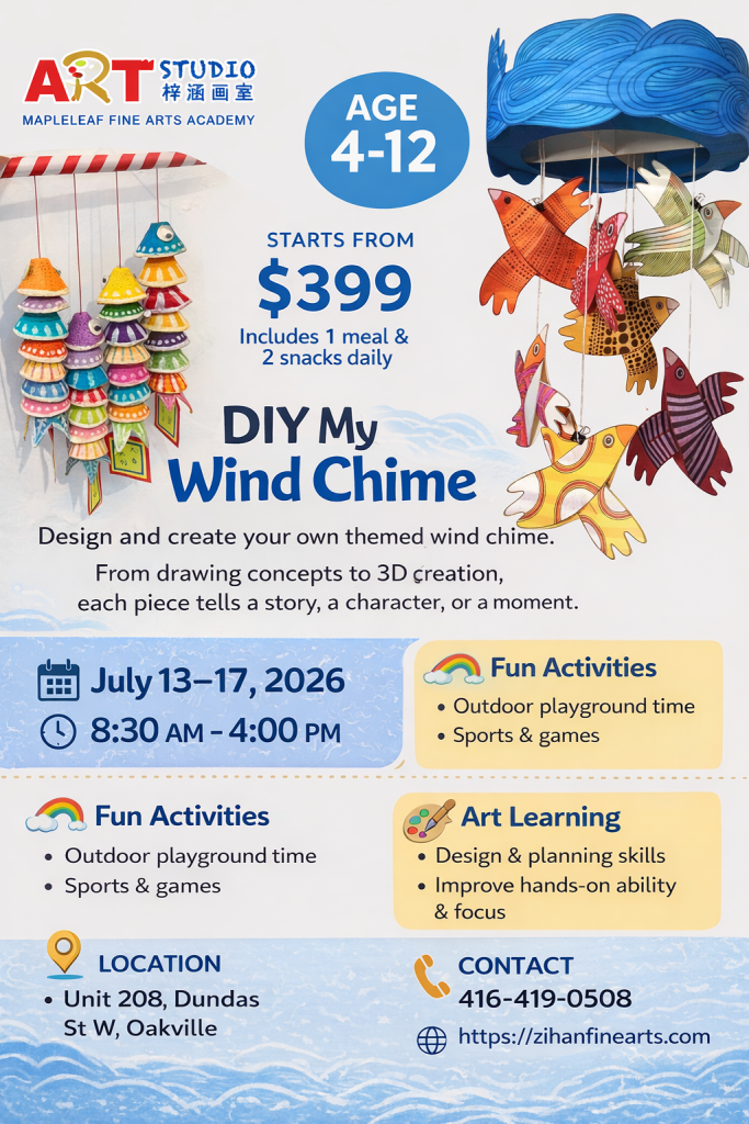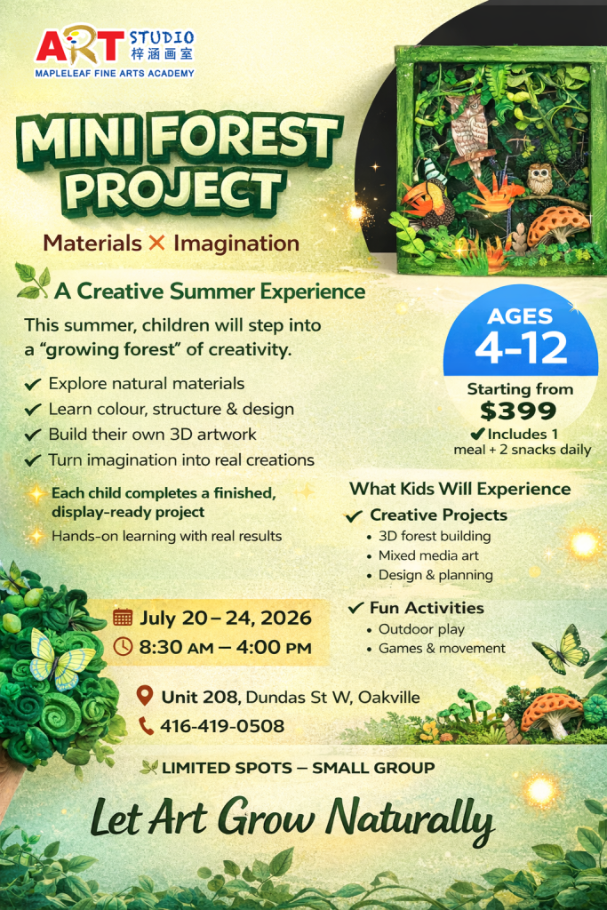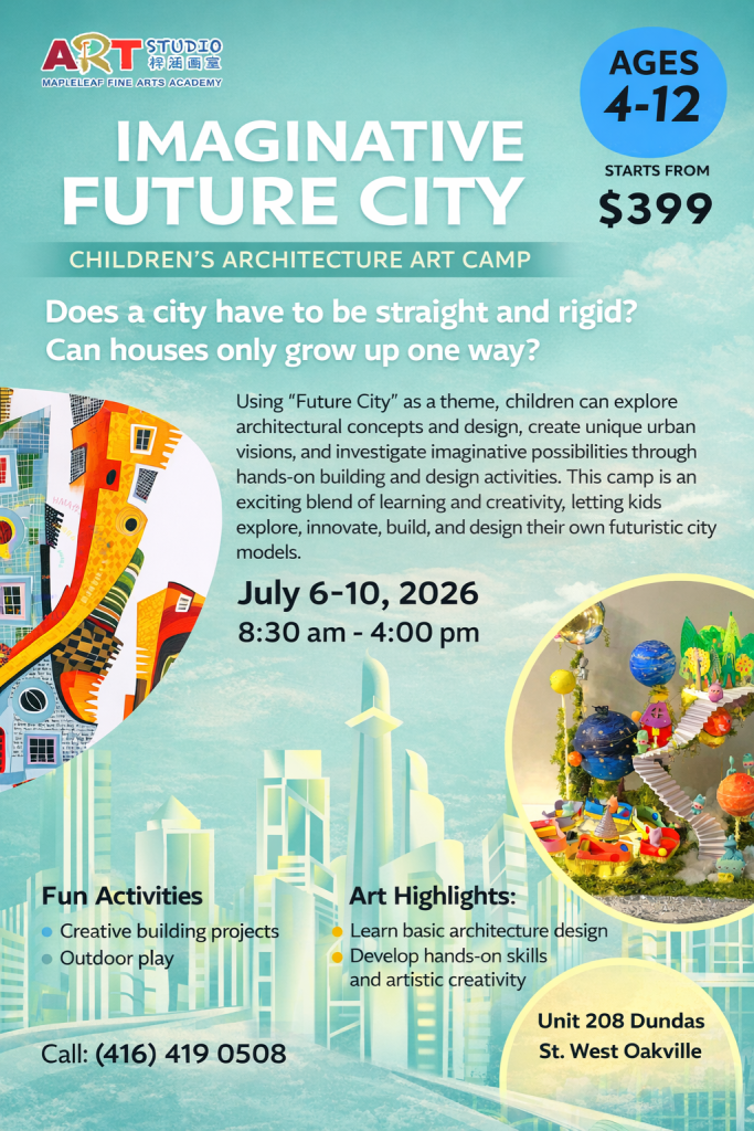 A thoughtfully curated July art camp for ages 4–12, where themes range from storytelling and imaginative worlds to architecture, design, and nature-inspired creation—guiding children to explore ideas, materials, and structure through refined, hands-on artistic experiences.